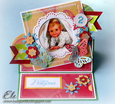 передо мной встала задача сделать открытку 2-х-летней малышке, озорнице и проказнице, впрочем такой же, как и ее бабушка, но не в детстве, а по сей день)))